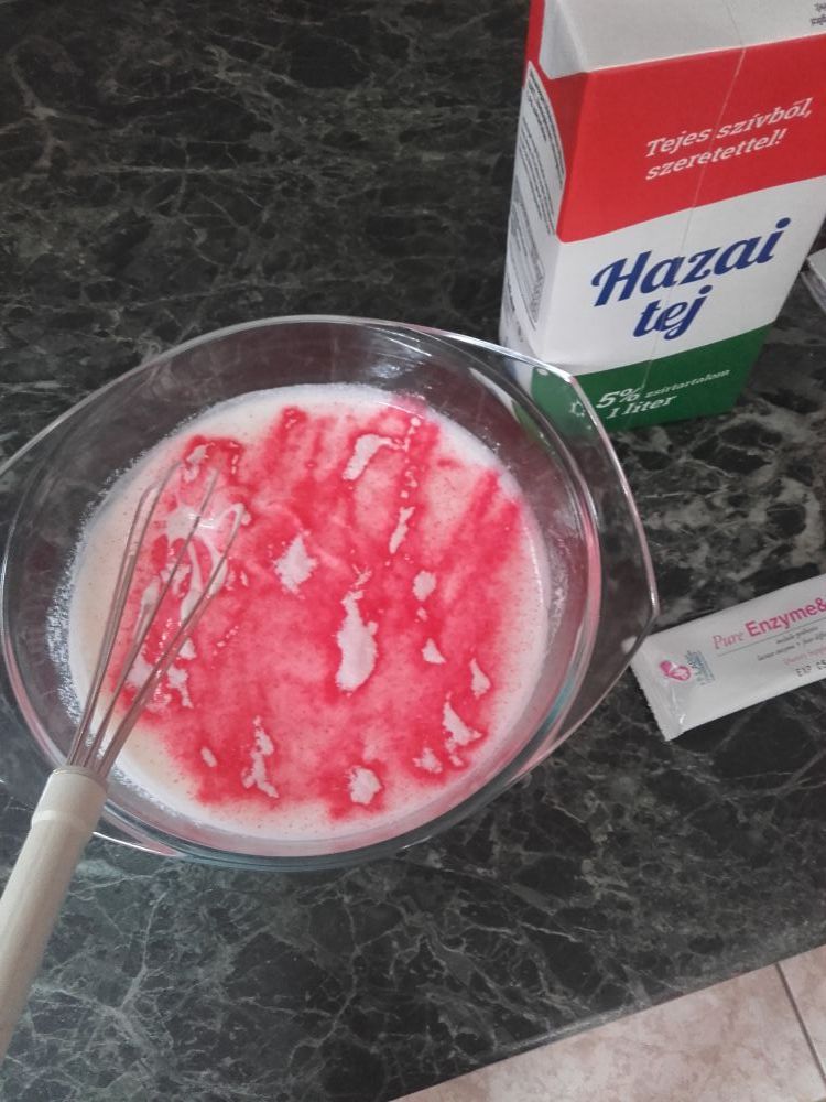 tálban összekeverjük. (az ízesítőt itt keverjük bele, ha csak egy ízben dolgozunk)